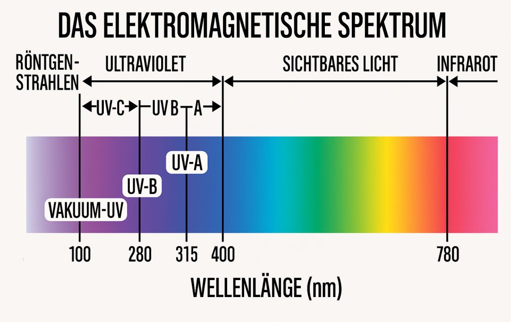 UV steht für Ultraviolettstrahlung. Dabei handelt es sich um eine Form von energiereichem Licht, das für das menschliche Auge unsichtbar ist. Allerdings besitzt es eine enorme Wirkung: In der Wasseraufbereitung nutzt man es gezielt, um DNS-Strukturen von Mikroorganismen zu zerstören. Dadurch verlieren Keime ihre Fähigkeit, sich zu vermehren – was letztlich zu ihrer Inaktivierung führt.